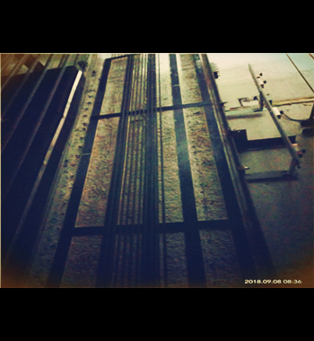 ④ 將涂有粘結樹脂的碳纖維板用手輕壓貼于需粘貼的位置。用橡皮滾筒順纖維方向均勻平穩(wěn)壓實,使樹脂從兩邊溢出,保證密實無空洞。當平行粘貼多條碳纖維板時,兩板之間空隙應不小于5mm;